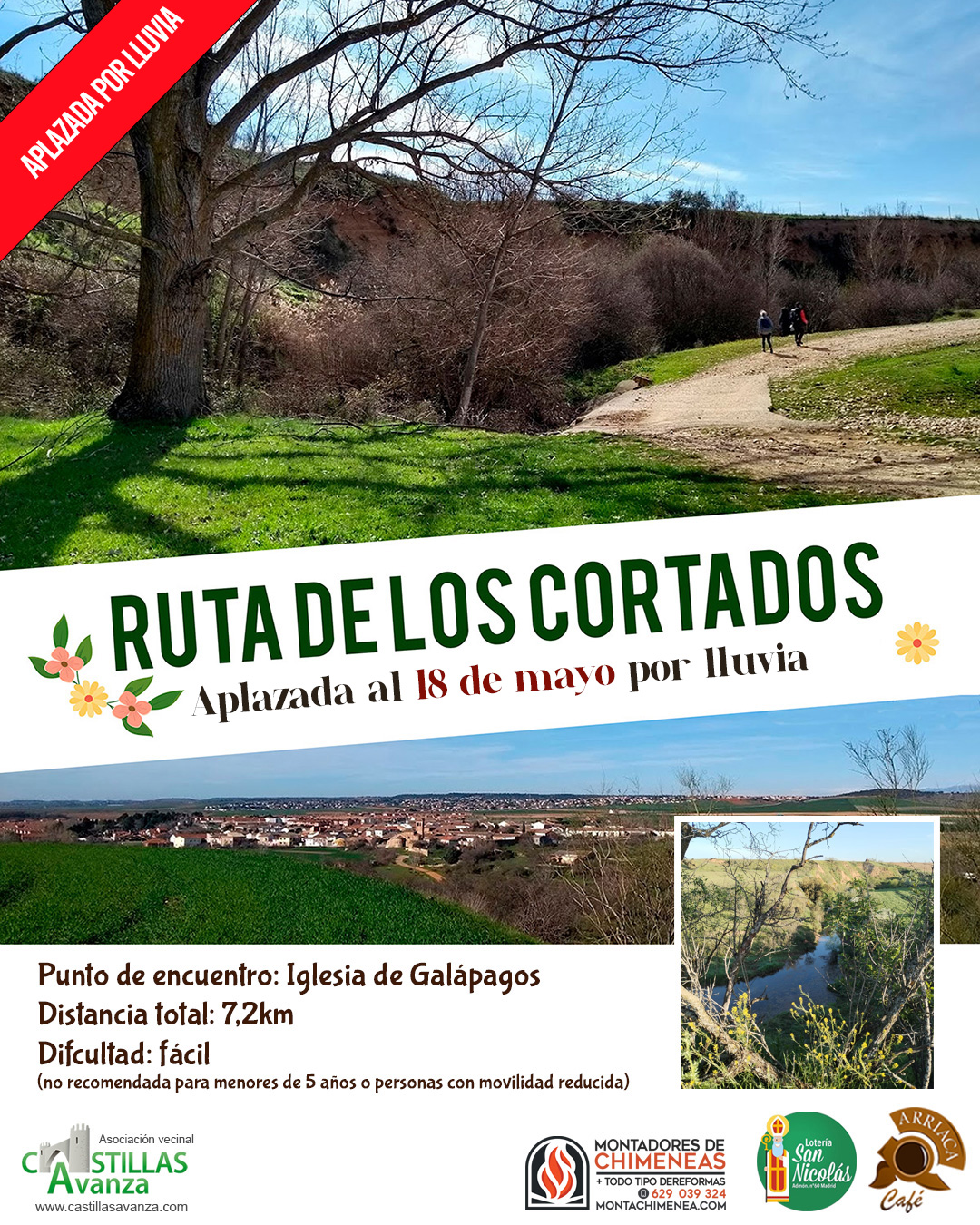 𝗗𝗮𝗱𝗮𝘀 𝗹𝗮𝘀 𝗽𝗿𝗲𝘃𝗶𝘀𝗶𝗼𝗻𝗲𝘀 𝗱𝗲 𝗹𝗹𝘂𝘃𝗶𝗮, 𝘃𝗲𝗺𝗼𝘀 𝗻𝗲𝗰𝗲𝘀𝗮𝗿𝗶𝗼 𝗮𝗽𝗹𝗮𝘇𝗮𝗿 𝗹𝗮 𝗿𝘂𝘁𝗮 𝗽𝗿𝗲𝘃𝗶𝘀𝘁𝗮 𝗽𝗮𝗿𝗮 𝗲𝘀𝘁𝗲 𝘀𝗮́𝗯𝗮𝗱𝗼 𝟮𝟳, 𝘀𝗶𝗲𝗻𝗱𝗼 𝗲𝗹 𝘀𝗮́𝗯𝗮𝗱𝗼 𝟭𝟴 𝗱𝗲 𝗺𝗮𝘆𝗼 𝗹𝗮 𝗳𝗲𝗰𝗵𝗮 𝗲𝗹𝗲𝗴𝗶𝗱𝗮 𝗽𝗮𝗿𝗮 𝗿𝗲𝗮𝗹𝗶𝘇𝗮𝗿𝗹𝗮… 𝗔𝘀𝗶́ 𝗾𝘂𝗲, 𝗼𝘀 𝗲𝗺𝗽𝗹𝗮𝘇𝗮𝗺𝗼𝘀 𝗮 𝘁𝗼𝗱𝗼𝘀 𝗮 𝗲𝘀𝗲 𝗱𝗶́𝗮, 𝗰𝗼𝗻 𝗺𝗮́𝘀 𝗴𝗮𝗻𝗮𝘀 𝗮𝘂́𝗻.